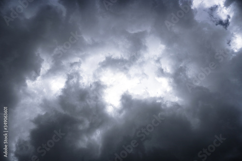 The watermark will not be included on Wall mural.: Terrible thunderclouds from the side of a plane - gloomy epic clouds - background image in a dark gray