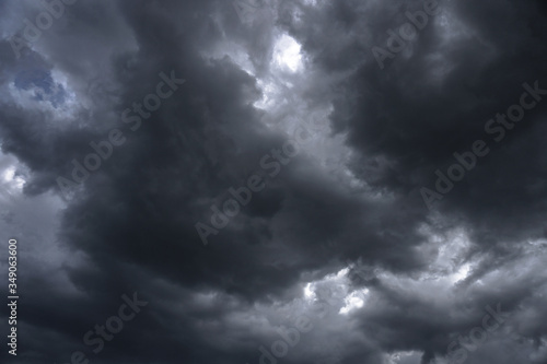 Terrible thunderclouds from the side of a plane - gloomy epic clouds - background image in a dark grayWall mural