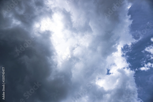 Terrible thunderclouds from the side of a plane - gloomy epic clouds - background image in a dark grayWall mural