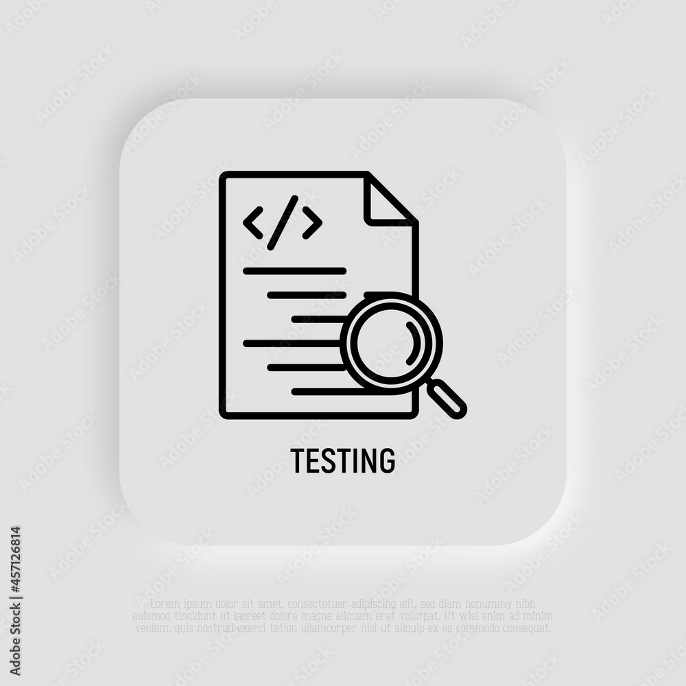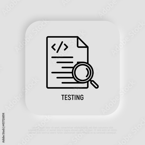 Wall mural : Testing software, code with magnifying glass thin line icon - modern vector illustration -