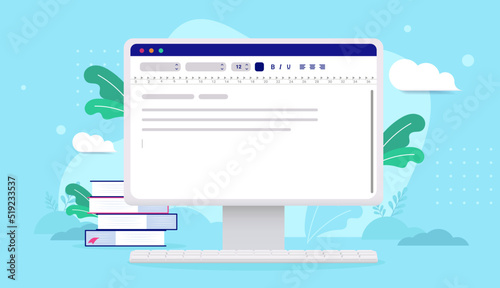 The watermark will not be included on Wall mural.: Text and word editing software - desktop computer with text document on screen - vector illustration