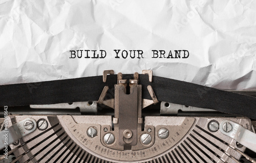 Wall mural text build your brand typed on retro typewriter