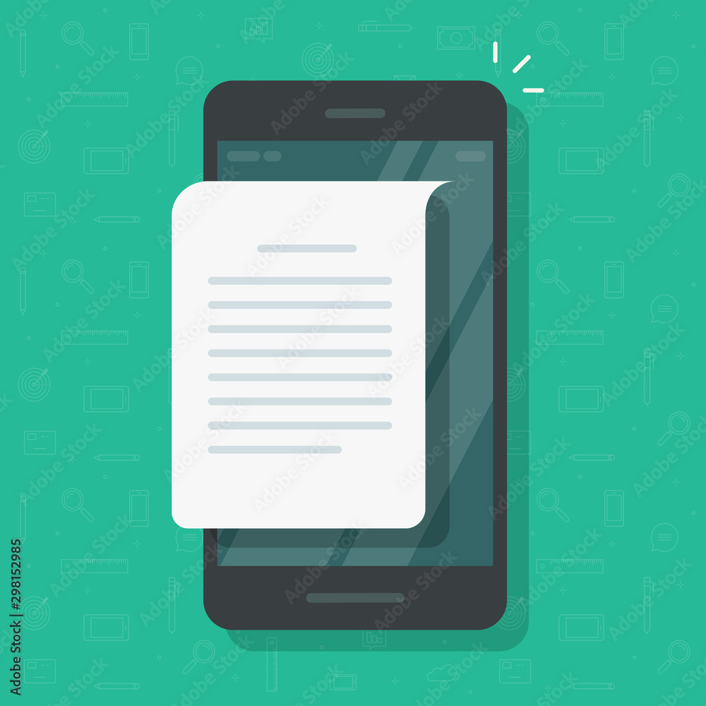 The watermark will not be included on Wall mural.: Text message or file reading on cellphone or mobile phone vector illustration, flat cartoon smartpho