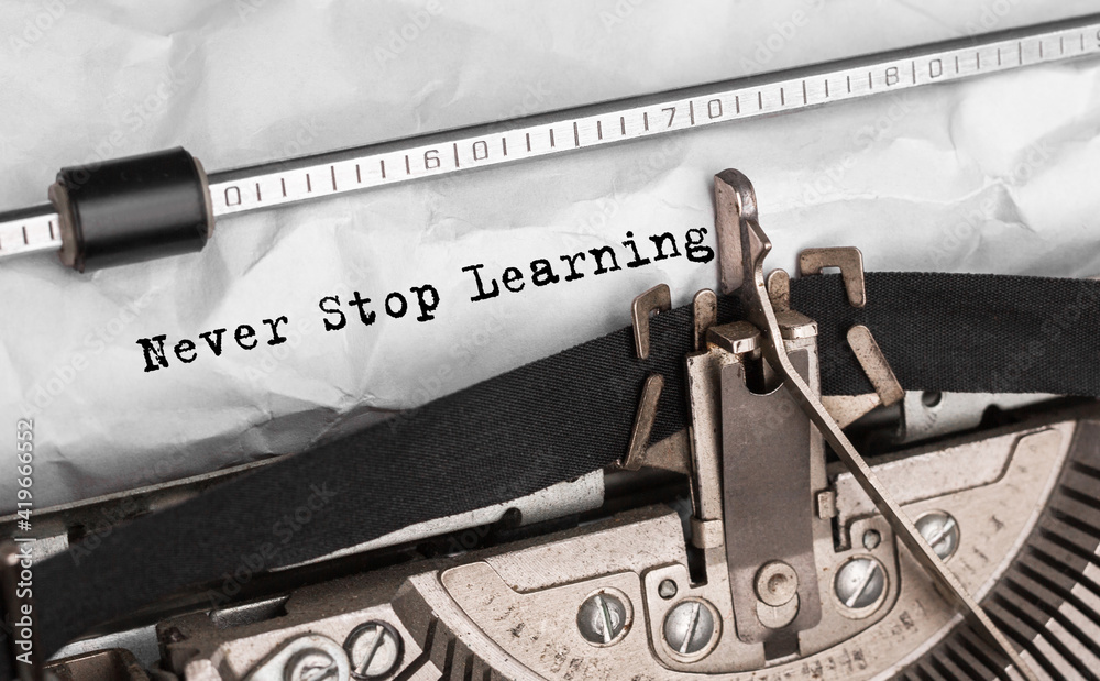 Wall mural text never stop learning typed on retro typewriter - Wall murals Wall mural text never stop learning typed on retro typewriter - Wall murals