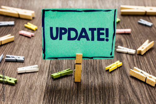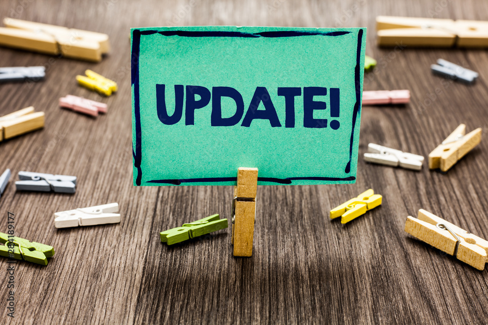 Wall mural : Text sign showing update motivational call - conceptual photo up to date with latest developments upd