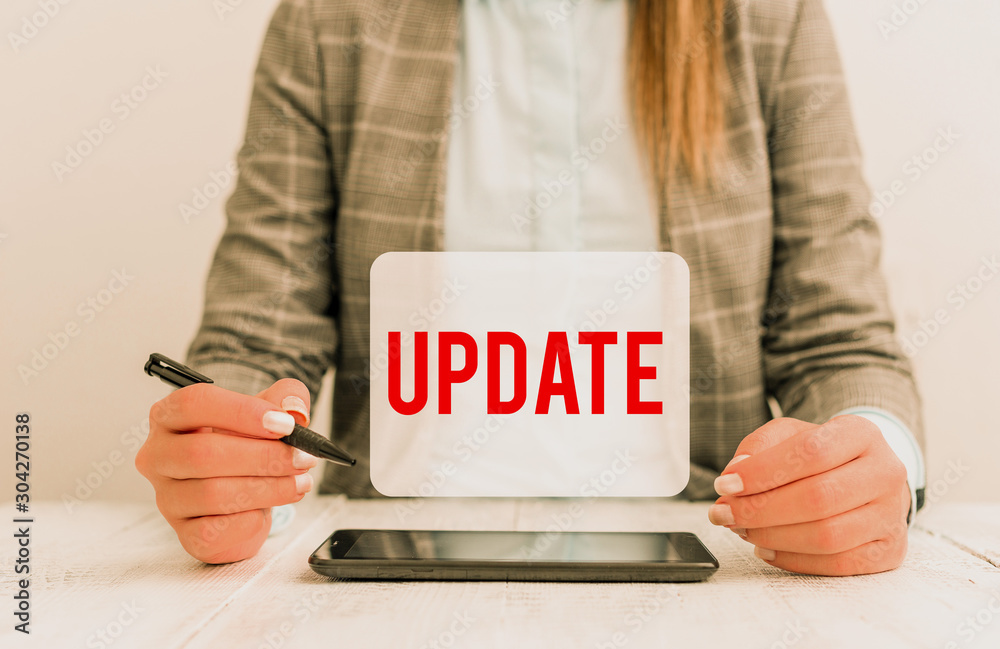 Wall mural : Text sign showing update - business photo text by adding new information or making corrections up to