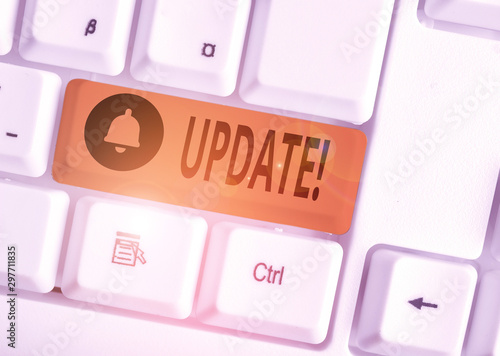 Wall mural : Text sign showing update - business photo text make something more modern or up to date like software