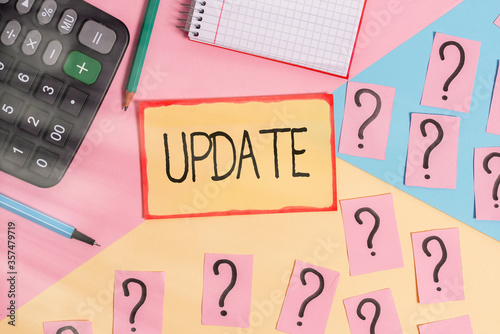 Wall mural : Text sign showing update - business photo text up to date as by adding new information or making corr