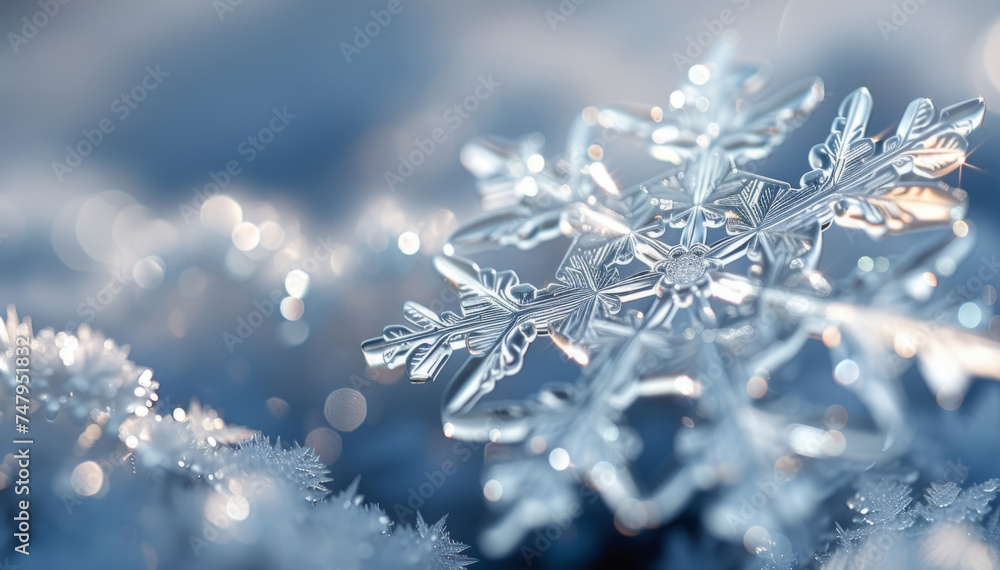 Wall mural : Texture of a frosty snowflake with a metallic sheen and frosted edges -