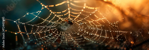 Wall mural : Texture of cobwebs and intricate shapes covered with dew - generative ai