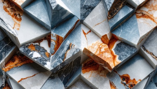 Wall mural textured abstract background of modern marble stone with geometric triangular shapes in shades of bl