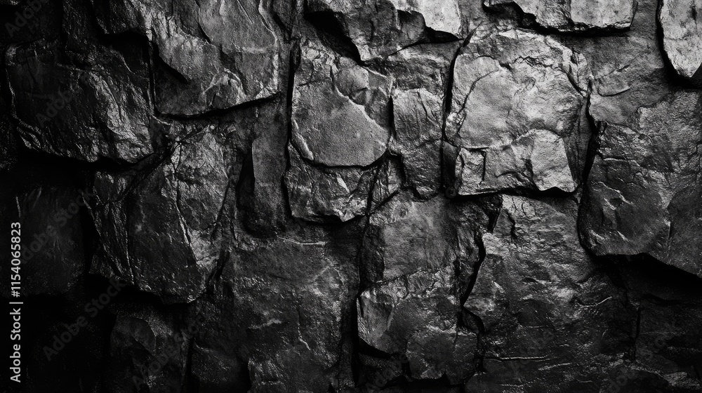 Textured black stone wall with rough surface and shadows for background or design use in architecturWall mural