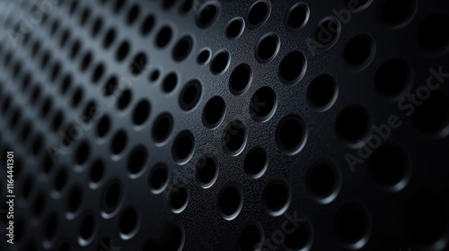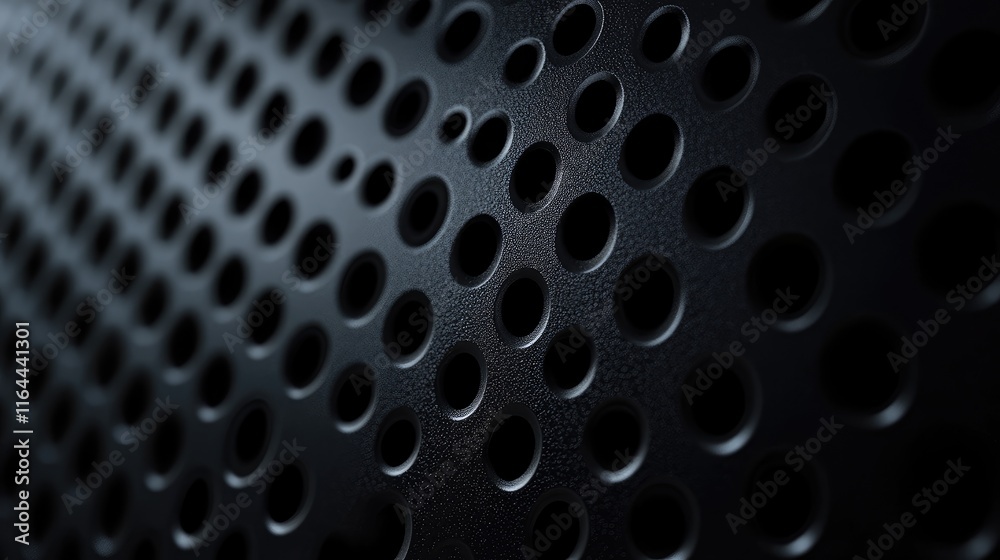 The watermark will not be included on Wall mural.: Textured black surface with circular holes in a gradient pattern artistic close-up
