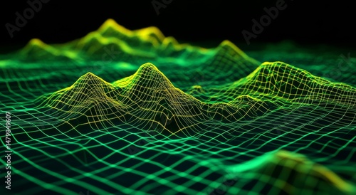 Wall mural the abstract digital landscape of flux, flow, grids-cape, and digital terrain is enhanced by artific