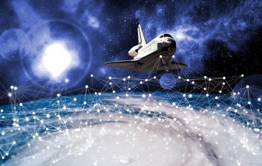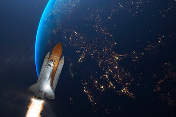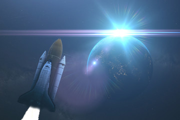 Wall mural the abstract intergalactic spaceship shuttle fly to the stars in outer space. elements of this image - Wall murals Wall mural the abstract intergalactic spaceship shuttle fly to the stars in outer space. elements of this image - Wall murals