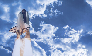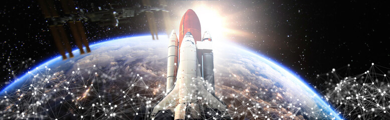 Wall mural the abstract intergalactic spaceship shuttle fly to the stars in outer space. elements of this image