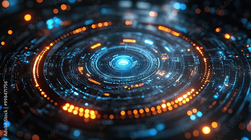 The watermark will not be included on Wall mural.: The abstract technology background is ai-generated, featuring advanced digital elements and futurist