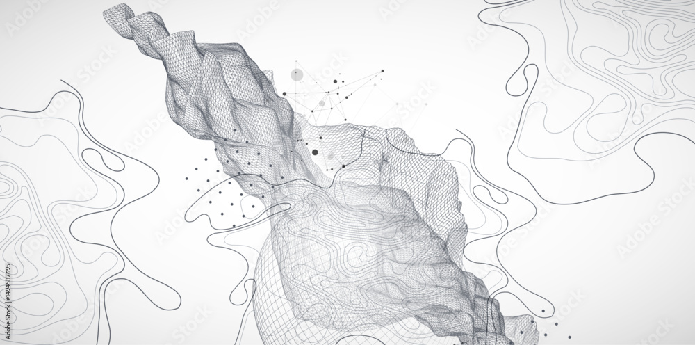 The watermark will not be included on Wall mural.: The abstract wave is made in a frame style - template for science and technology presentation - sphere