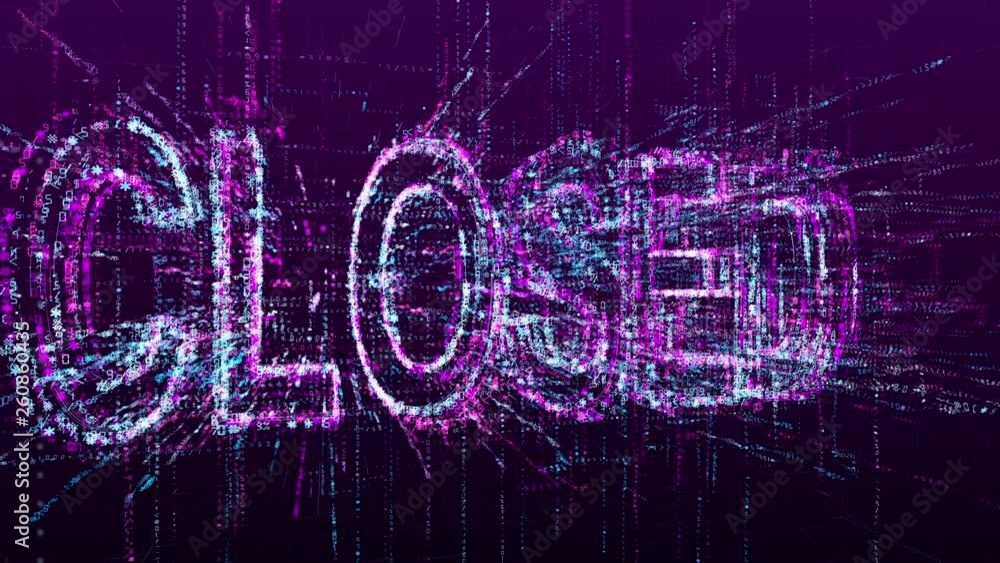 Wall mural the animation of the sign is closed. it consists of a stream of numbers and symbols in the digital s