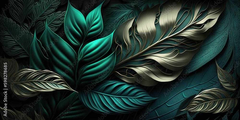 The watermark will not be included on Wall mural.: The backdrop is a metallic green leaf texture - generative ai generative ai