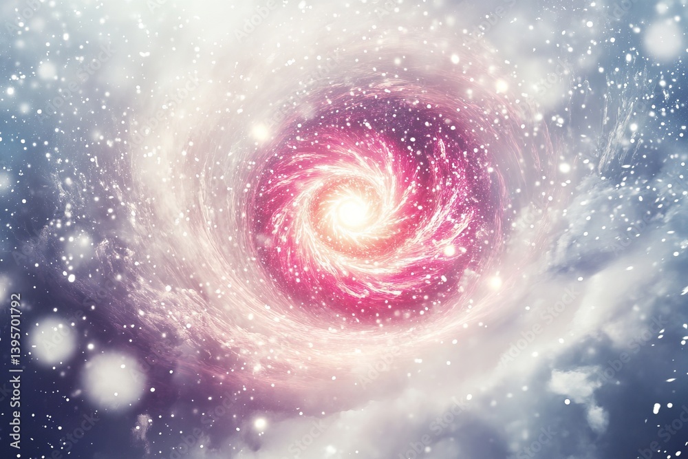 The watermark will not be included on Wall mural.: The background is a soft, abstract pink hue with blurred multicolored clouds, evoking a spring atmos