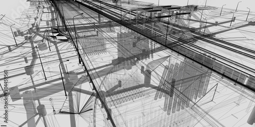 Wall mural the bim model of the object of transport infrastructure of wireframe view
