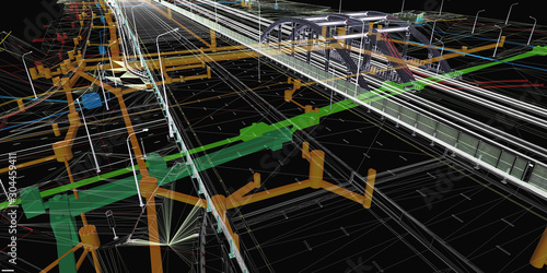 Wall mural the bim model of the object of transport infrastructure of wireframe view - Wall murals Wall mural the bim model of the object of transport infrastructure of wireframe view - Wall murals