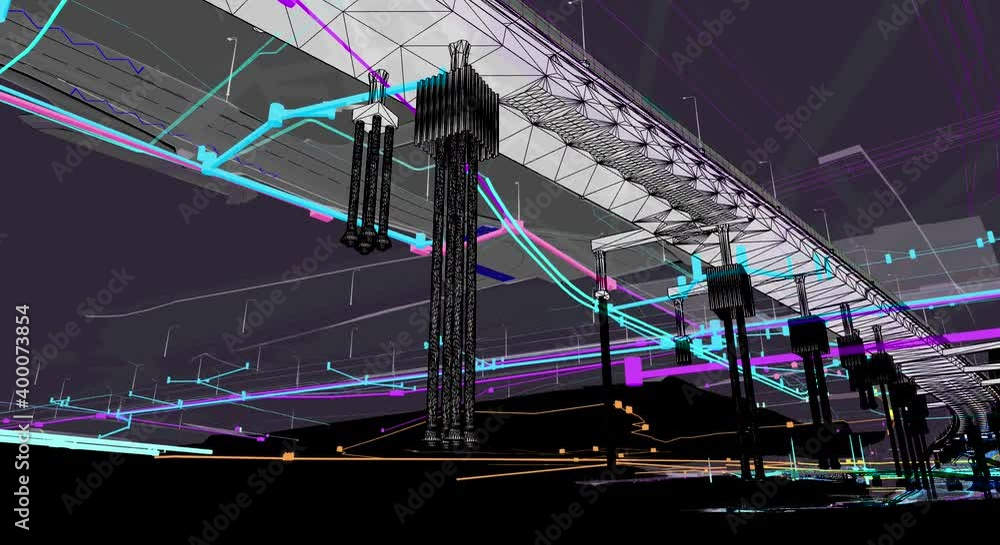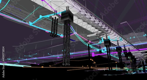 Wall mural the bim model of the object of transportation infrastructure of wireframe view