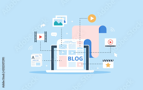 Wall mural : The blog page fill out with content - articles and media materials uploading process - blogging, conte