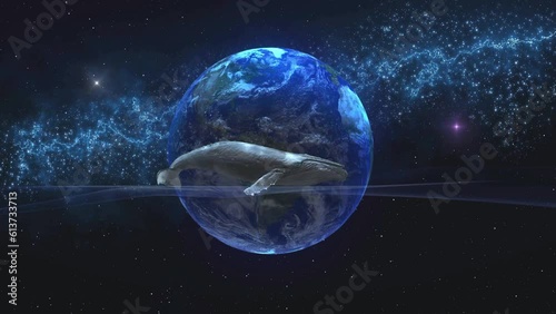 Wall mural the blue whale swims towards the cosmic waves, against the backdrop of the vast earth. fantasy with  - Wall murals Wall mural the blue whale swims towards the cosmic waves, against the backdrop of the vast earth. fantasy with - Wall murals