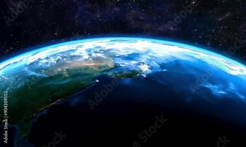 Wall mural the camera slowly zooms out from a close-up view of planet earth as seen from space (mov)