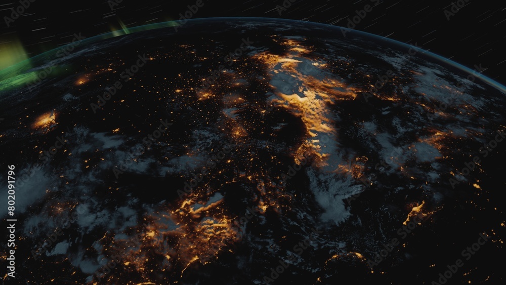 The watermark will not be included on Wall mural.: The change of day and night on planet earth a view from space - 3d render of earth with a detailed ni