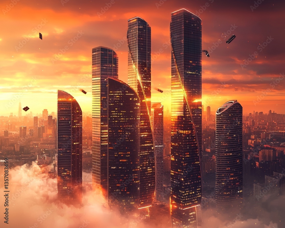 The watermark will not be included on Wall mural.: The city of tomorrow is characterized by lofty structures and a reddened atmosphere