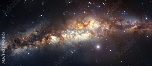 Wall mural the close up image showcases a wondrous galaxy teeming with multiple stars and a brilliant light shi - Wall murals Wall mural the close up image showcases a wondrous galaxy teeming with multiple stars and a brilliant light shi - Wall murals