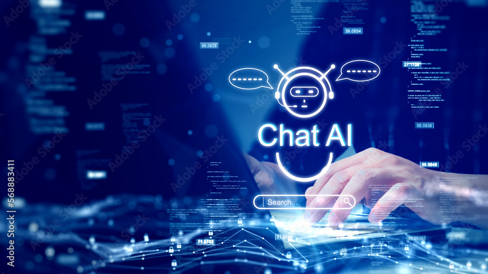 Wall mural the concept of a person using a computer connected to chatai technology to help process the required