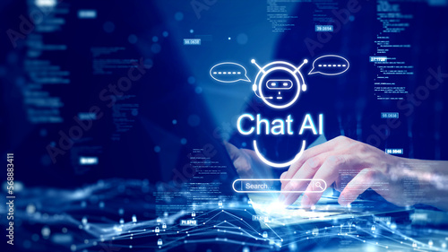 Wall mural : The concept of a person using a computer connected to chatai technology to help process the required