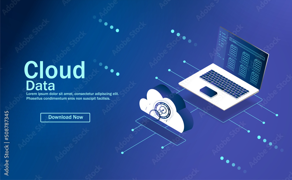 Wall mural the concept of cloud computing. secure data exchange on a laptop. illustration of cloud technologies