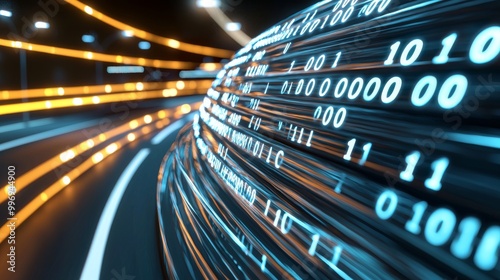 Wall mural the concept of cyber global communication and coding along with a graphic creating a vision of high