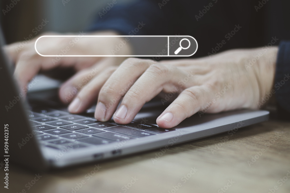 Wall mural the concept of using technology to search for information, a man's hand is using a smartphone to sea - Wall murals Wall mural the concept of using technology to search for information, a man's hand is using a smartphone to sea - Wall murals