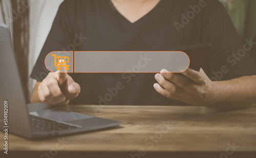 Wall mural the concept of using technology to search for information, a man's hand is using a smartphone to sea - Wall murals Wall mural the concept of using technology to search for information, a man's hand is using a smartphone to sea - Wall murals