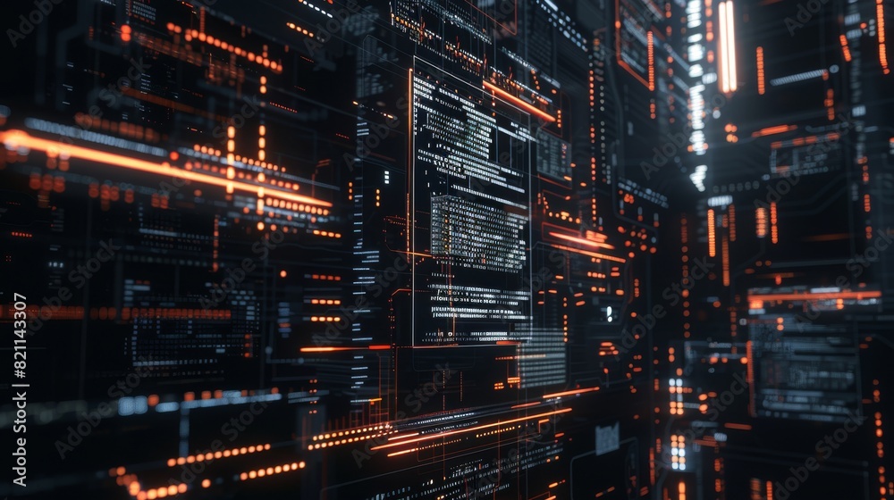 Wall mural the dark programming interface of a mobile app, along with lines of code. the coding process behind  - Wall murals Wall mural the dark programming interface of a mobile app, along with lines of code. the coding process behind - Wall murals