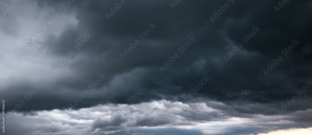 The watermark will not be included on Wall mural.: The dark sky with heavy clouds converging and a violent storm before the rain - bad or moody weather s