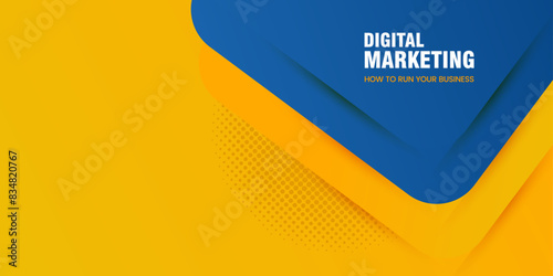 The watermark will not be included on Wall mural.: The design incorporates a halftone pattern, giving it a trendy and dynamic look - blue and yellow ban