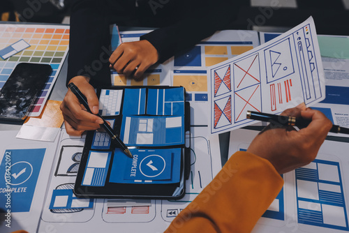 Wall mural : The designer team is designing the uxui system to make the uxui system work well on new phones and s