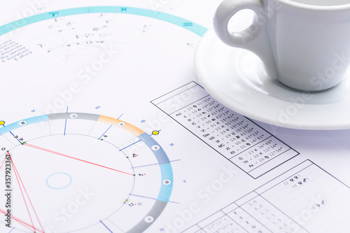 The watermark will not be included on Wall mural.: The desktop of an astrologer - the magical mysterious atmosphere of the working environment of the pr