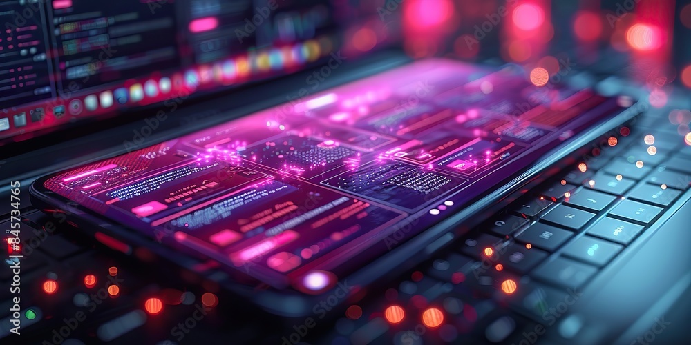 Wall mural the development of mobile apps on the go web design concept layout website on a mobile device progra