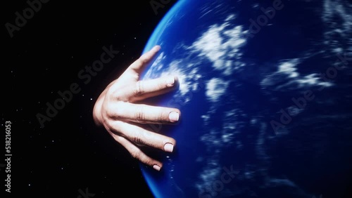 Wall mural the earth planet in hands. outer space. realistic 4k animation.
