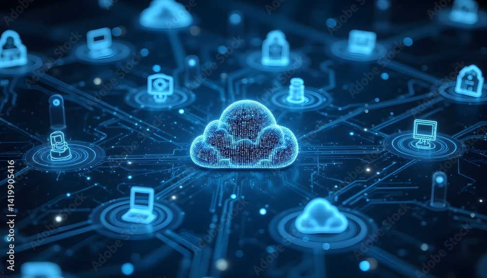 Wall mural the evolution of abstract cloud computing networks has revolutionized digital technology and data tr - Wall murals Wall mural the evolution of abstract cloud computing networks has revolutionized digital technology and data tr - Wall murals