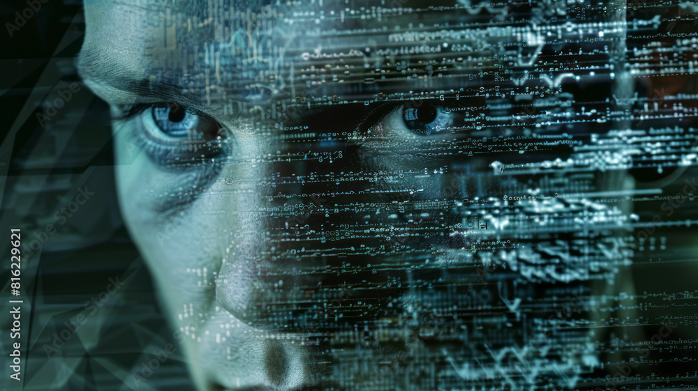 The watermark will not be included on Wall mural.: The face of a human being with an array of code stock photo,generative ai