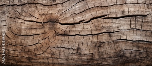 Wall mural the fissure visible on the trimmed timber's surface, suitable for a copy space image.